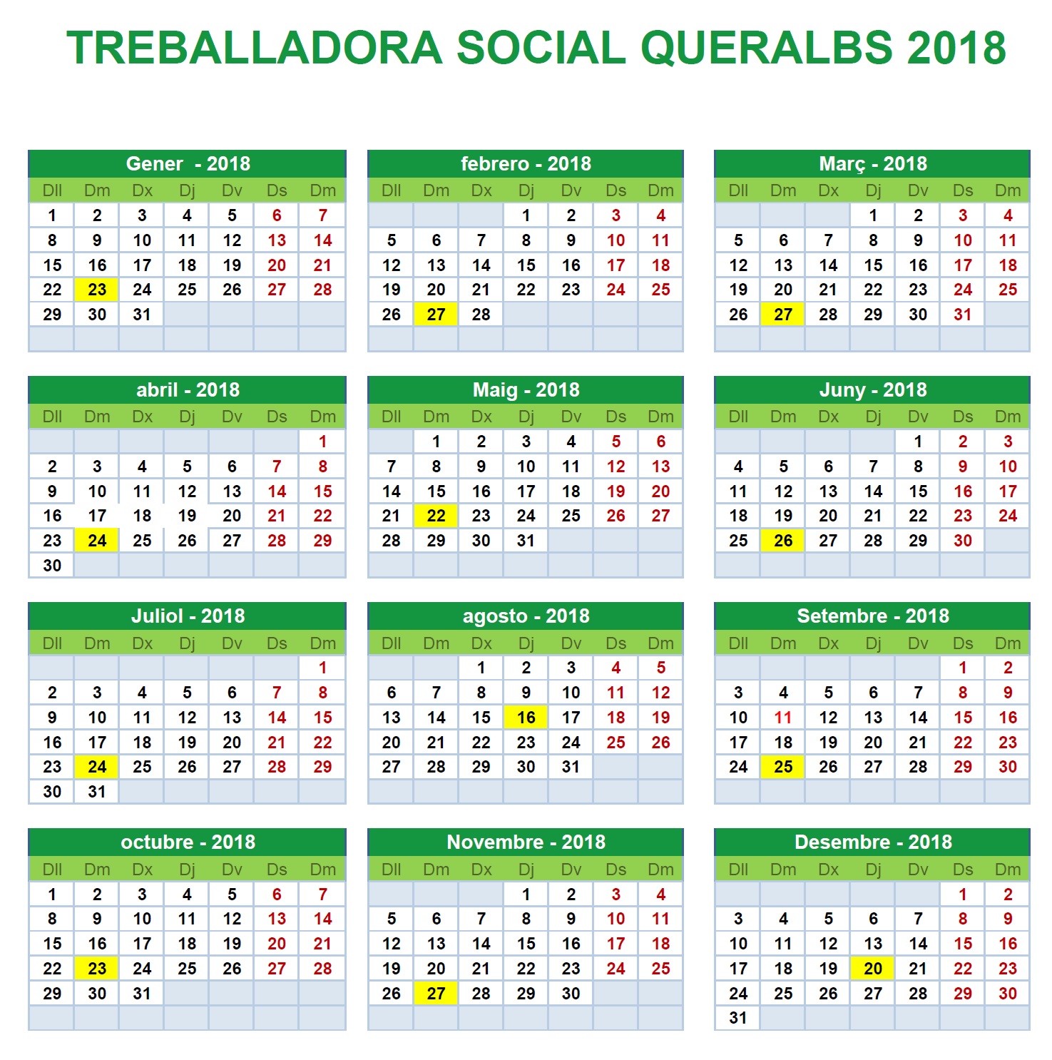 Calendari assistenta social 2020