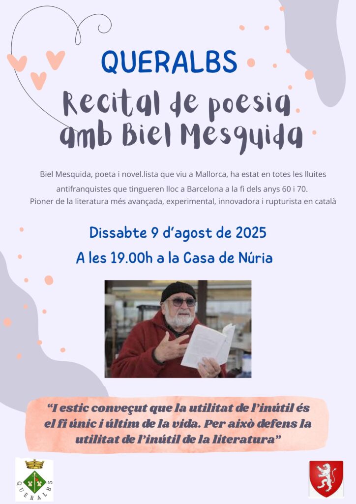 Agenda Recital de poesia amb el Biel Mesquida 09/08/2025 | Casa de Núria < Entrada AnteriorEntrada Posterior >